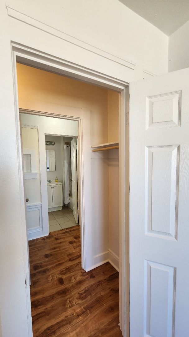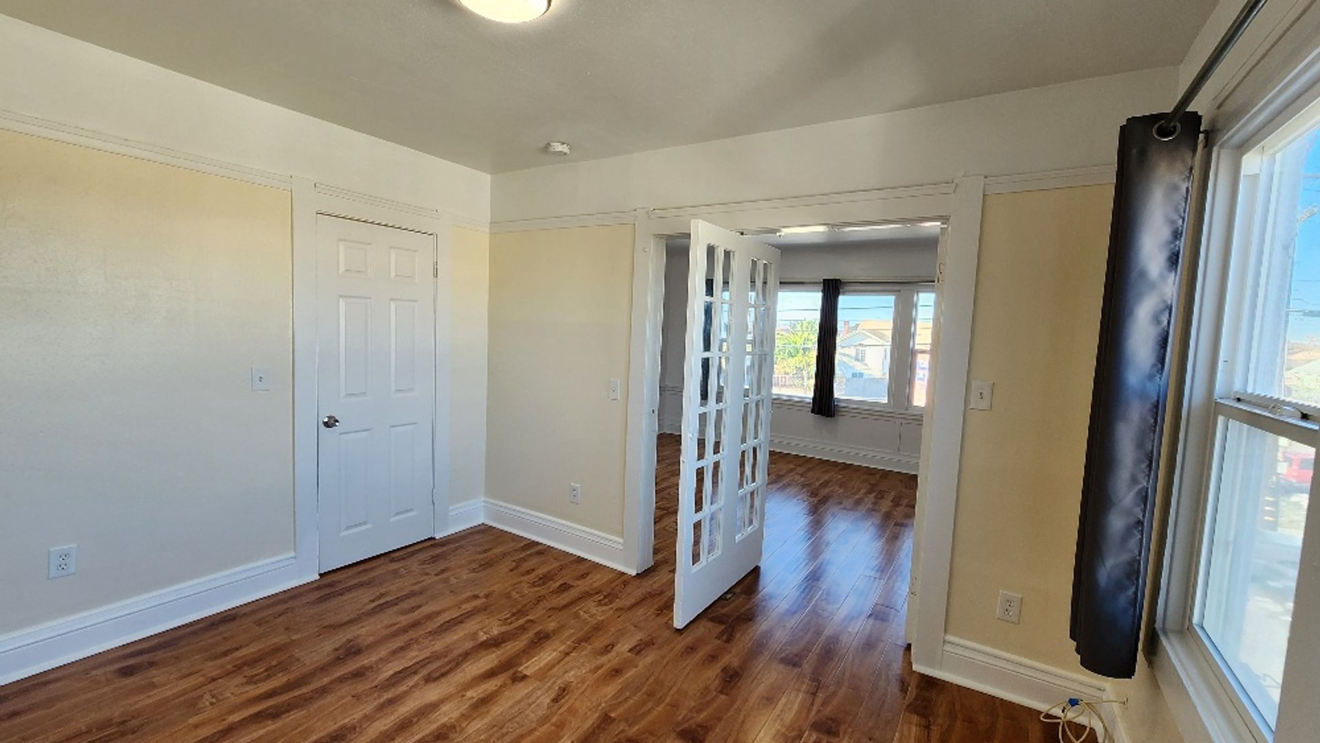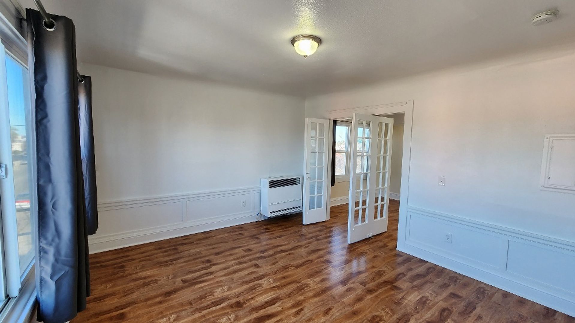 The apartment has lots of beautiful classic charm and character with windowed vertical swing bedroom doors, and much more.