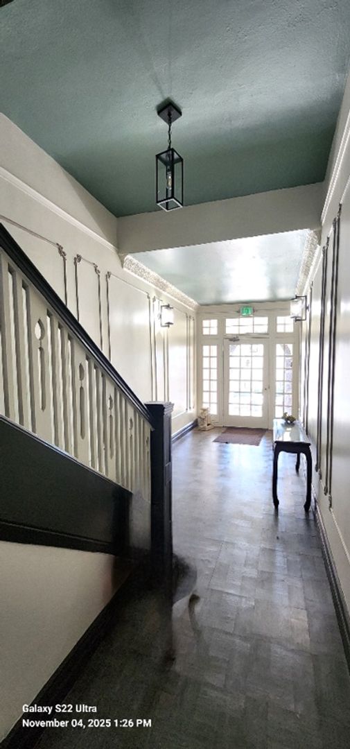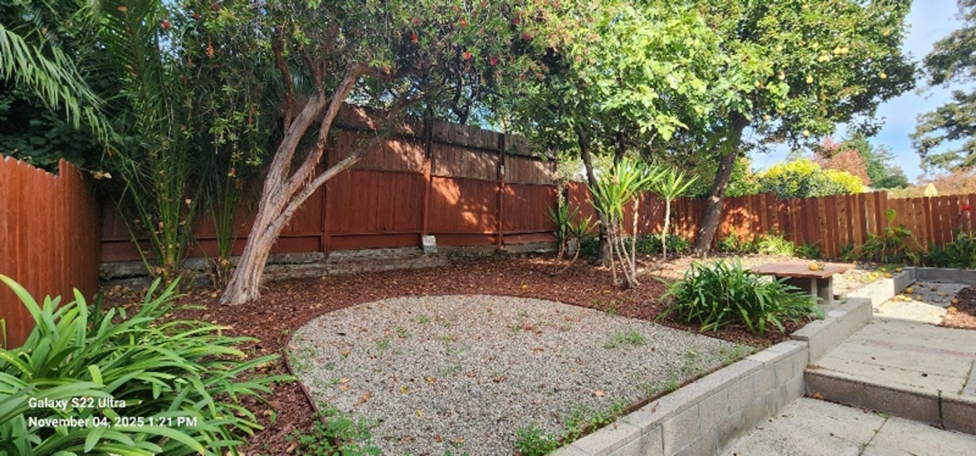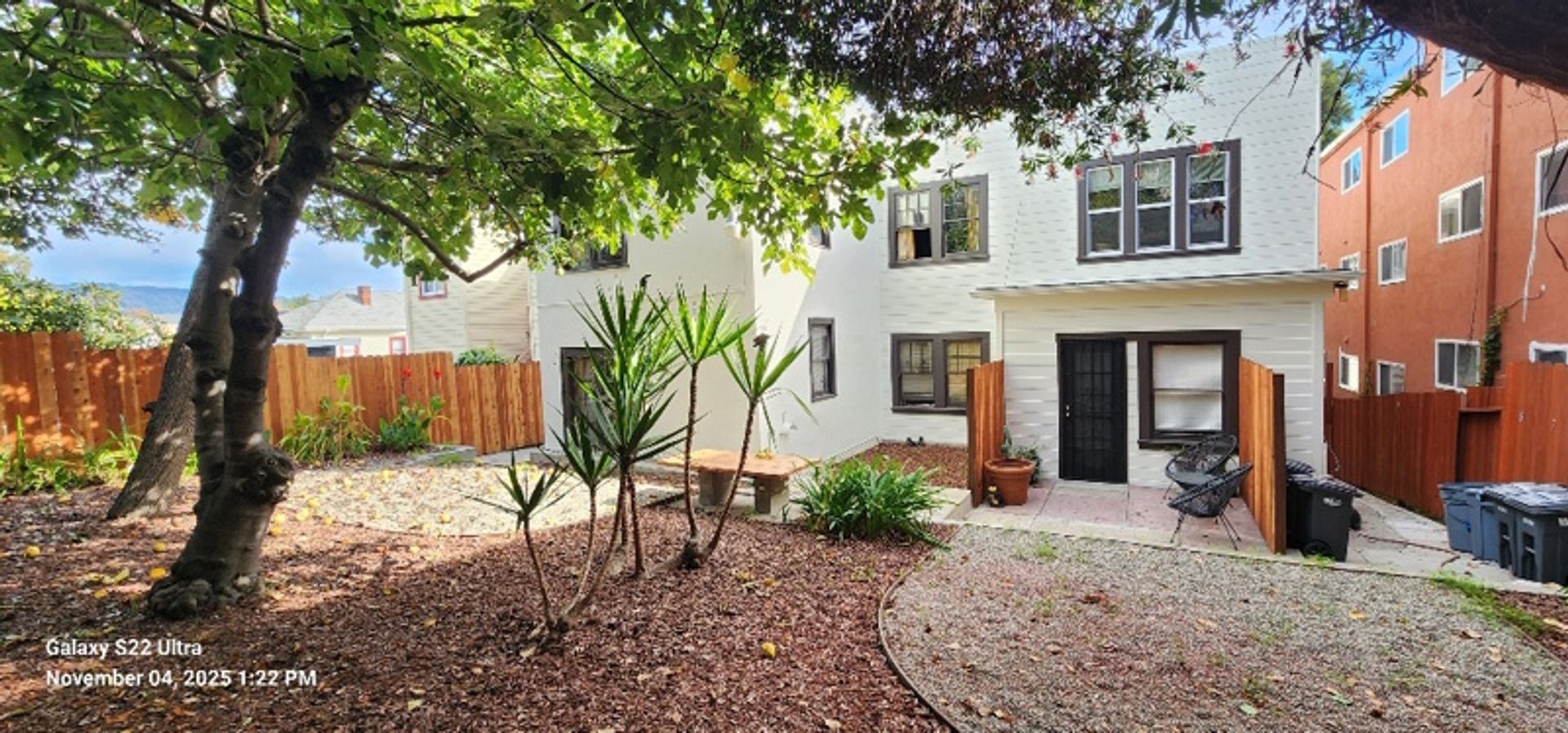 The rear yard is a highlight, beautifully landscaped with mature greenery and a lovely pear tree, providing a peaceful outdoor retreat. Situated in a quiet, well-maintained neighborhood, this apartment is conveniently located within walking distance to Lake Merritt, offering excellent access to parks, restaurants, and public transportation.