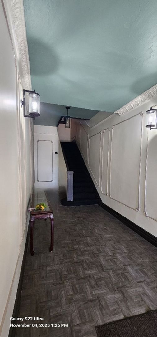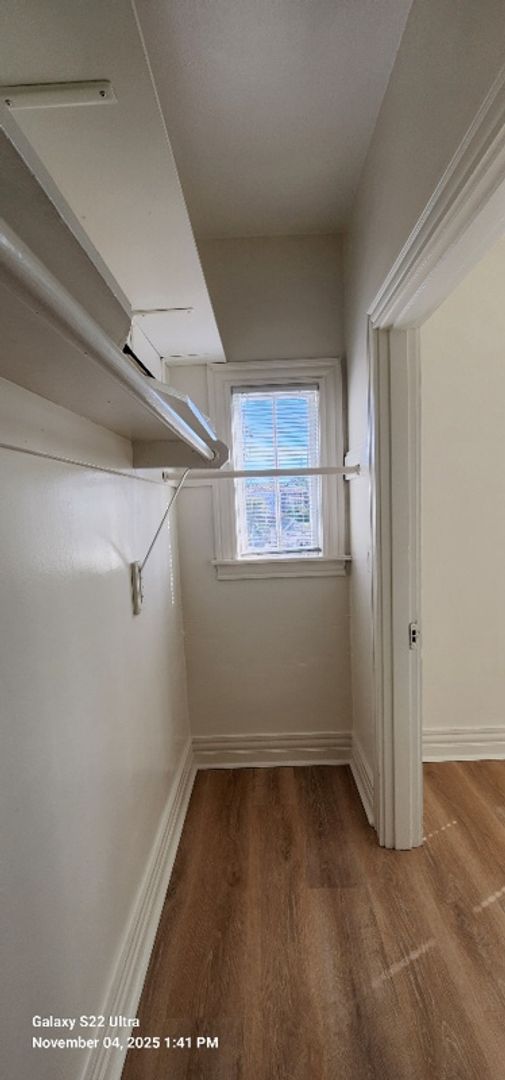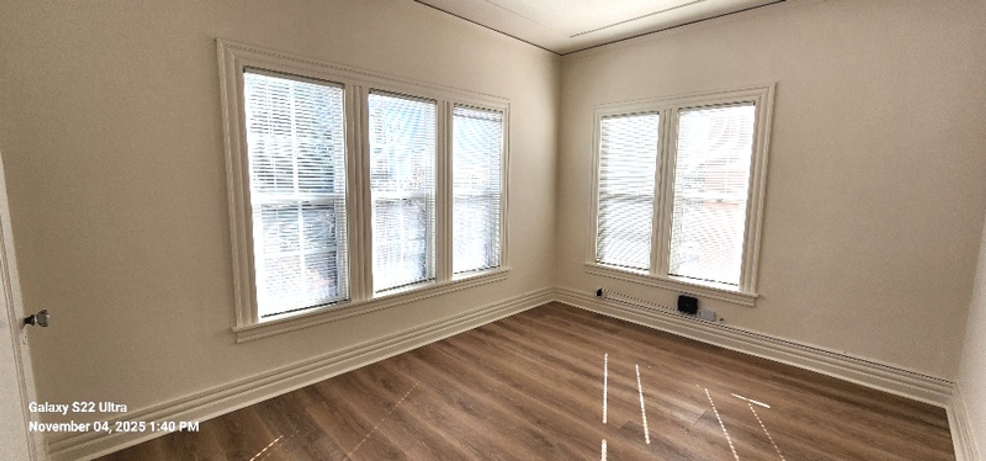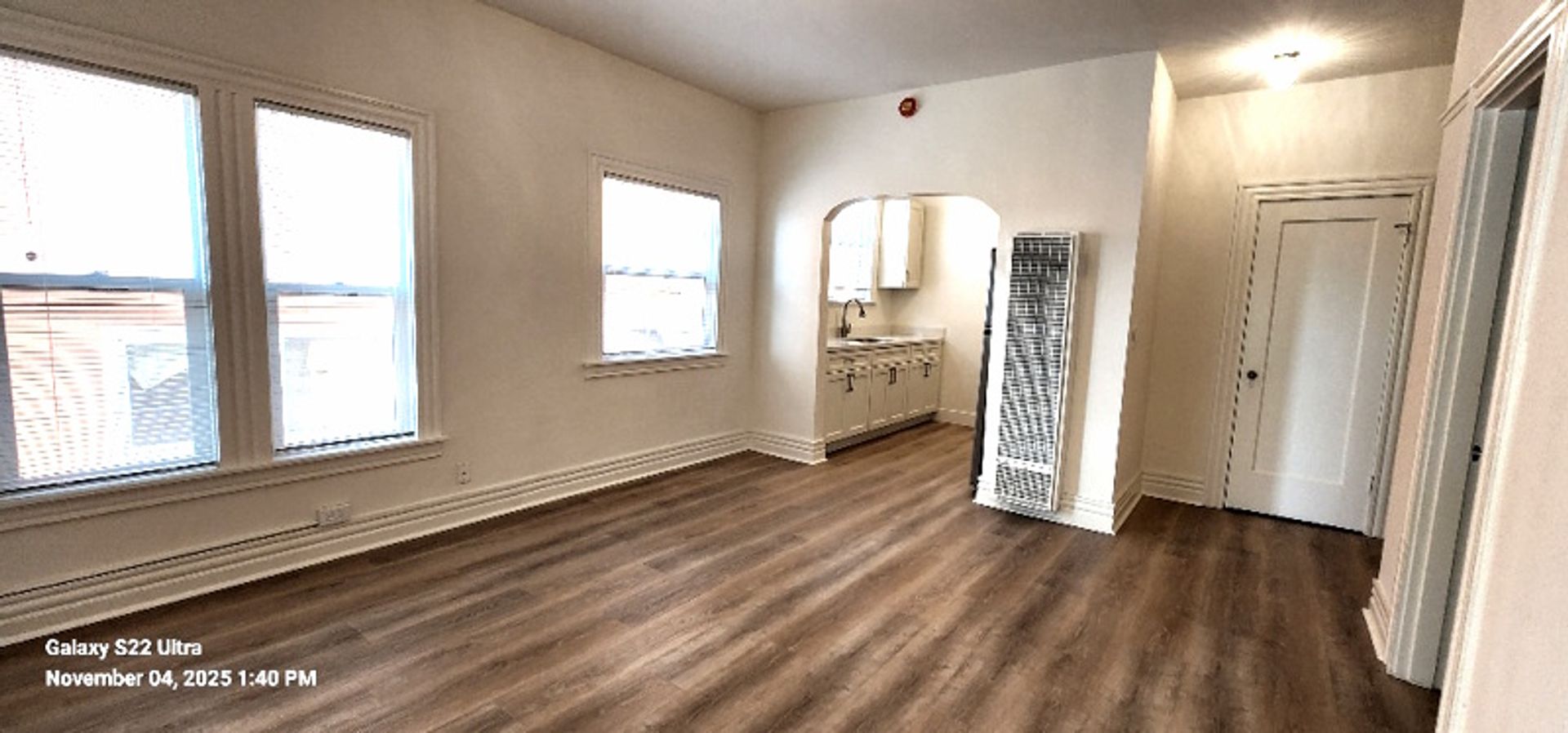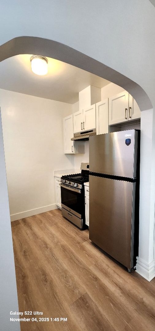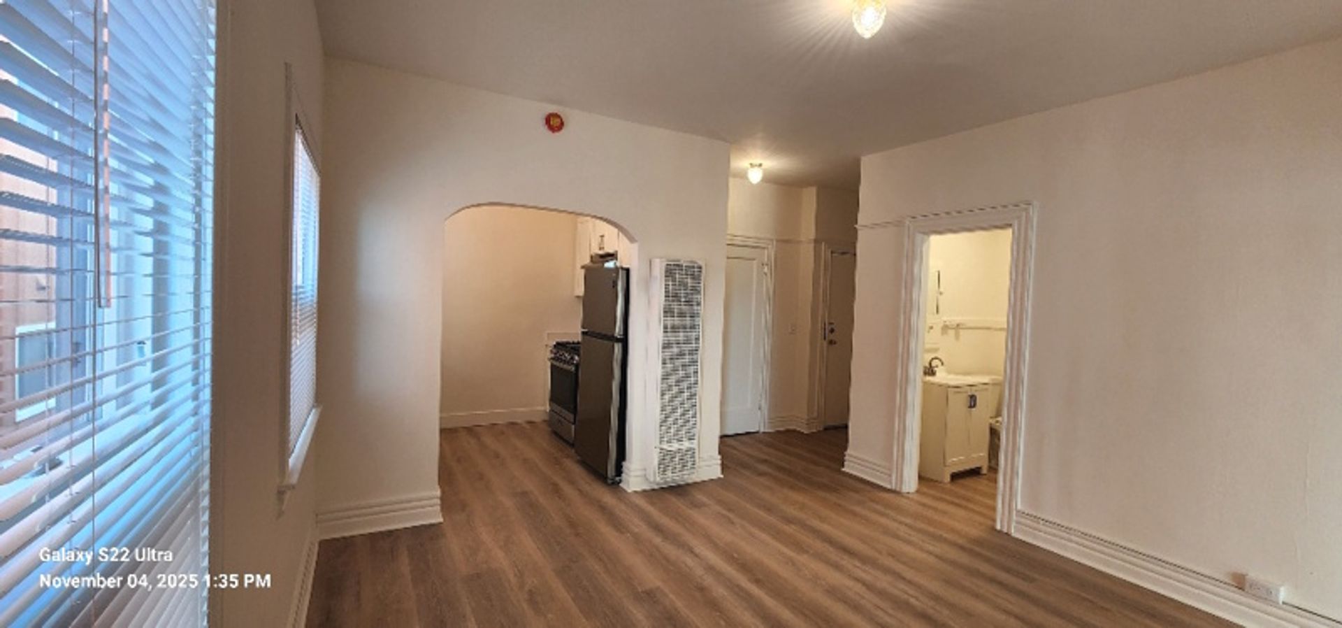 The large living area boasts new flooring and fresh paint throughout, creating a clean and contemporary ambiance. The sizable, sunlit bedroom includes multiple windows that flood the space with natural light and a generous closet for ample storage. The building itself offers secure entry for residents, along with secure mailboxes for added safety. Off-street parking is available for residents.