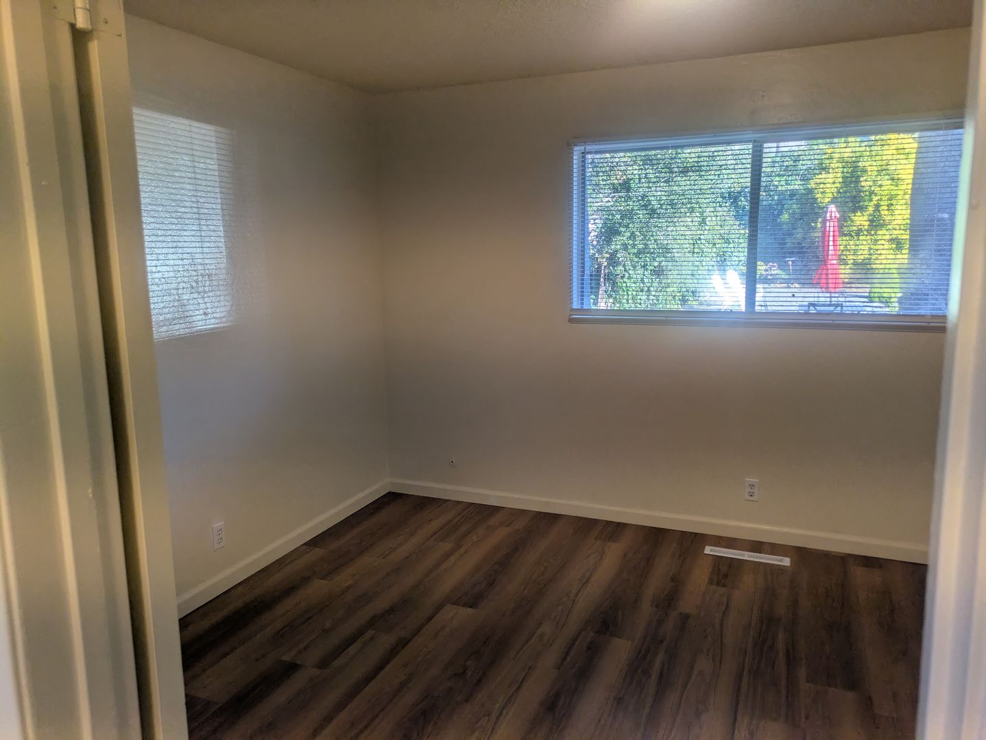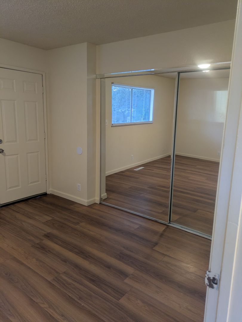 This apartment has been freshly painted, with new flooring throughout.