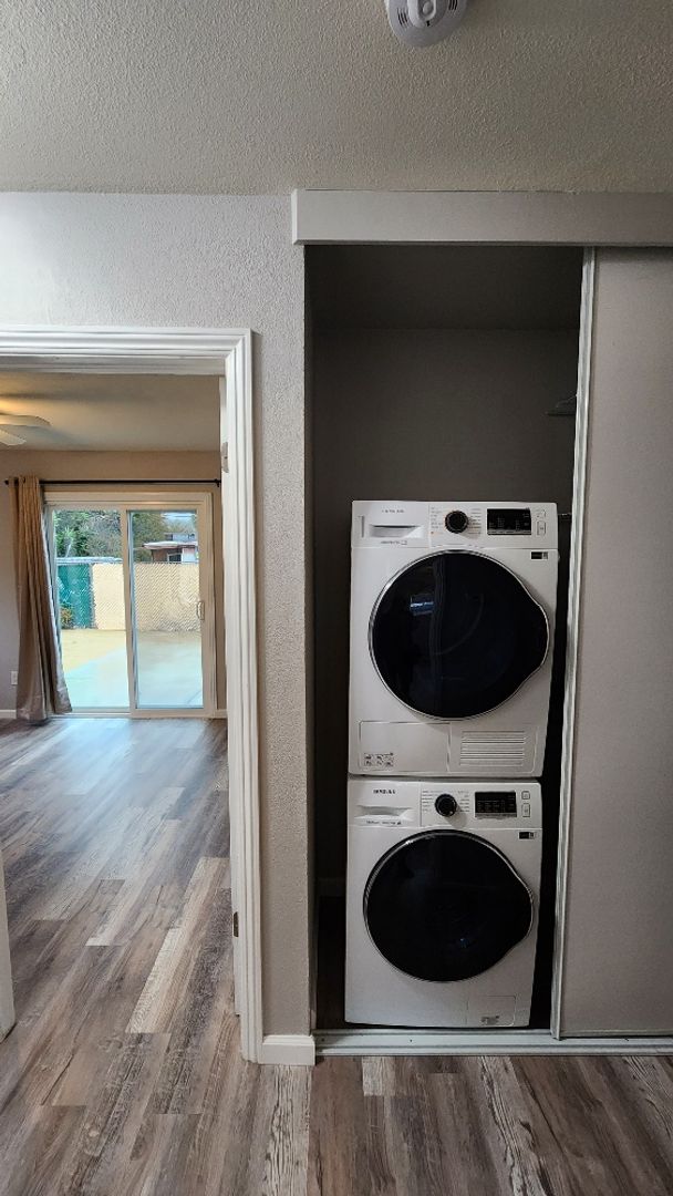 The home offers newer flooring throughout, a beautiful and functional galley kitchen with a dishwasher, stainless steel gas stove, and a stainless-steel refrigerator. The kitchen sink is amazing, it is an under-mounted deep professional stainless-steel sink! The home also comes with a washer and dryer!